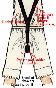 Solamente durante sus ciclos menstruales las mujeres solían ponerse un paño entre las piernas, que lo ajustaban con una especie de sábana, muy parecido a lo que hacen los luchadores de sumo. Pero aún así las fugas eran frecuentes. De hecho, mientras les duraba el período, acostumbraban a llevar más enaguas que de costumbre, y si les era posible, tenían en el armario su dotación de enaguas de franela con el fin de evitar aquellas inoportunas manchas reveladoras.