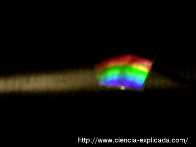 Tras todo esto, ya podemos iluminar la caja a través de la ranura con el tipo de luz a analizar y podremos ver su espectro a través de la ventana. Primero os muestro lo que se ve con una lámpara incandescente (¡¡perdón por la calidad de esta imagen!!):
